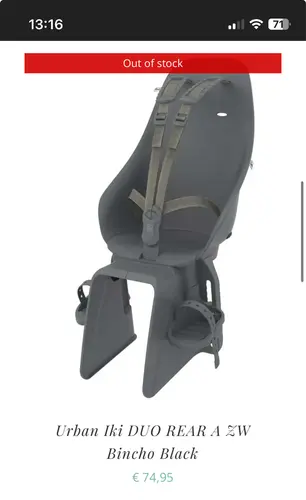 Ik heb deze ook! Ik heb een elektrische fiets waarbij de batterij ook onder de bagagedrager zit. Ik ben er nog niet veel mee gaan fietsen, maar ben er voorlopig toch tevreden van 😁. Het enige nadeel is dat je er geen fietszakken aan kan hangen, maar dat is bij elke fietsstoel wel denk ik?