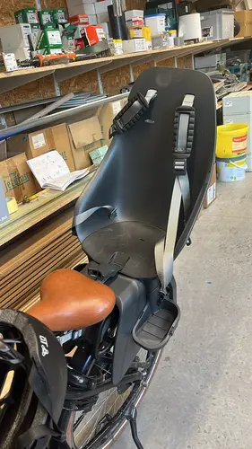 Wij hebben ook een urban iki, ebike van de decathlon en onze fietszakken kunnen er wel nog op. Wij hebben ook een extra dingetje zodat we de stoel kunnen verwisselen van fiets.