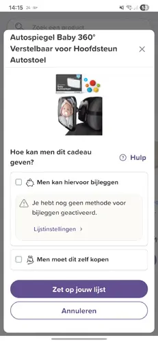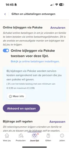 Ik vond die bijdrage zelf regelen inderdaad ook wat raar want dan krijg je als 'koper' eigenlijk gewoon het rekeningnummer van de ouders te zien en moet je zelf het bedrag storten. Aangezien wij zowel pakske als een pamperrekening op het kaartje zullen zetten, hebben we toch gekozen de stortingen via pakske te laten verlopen..