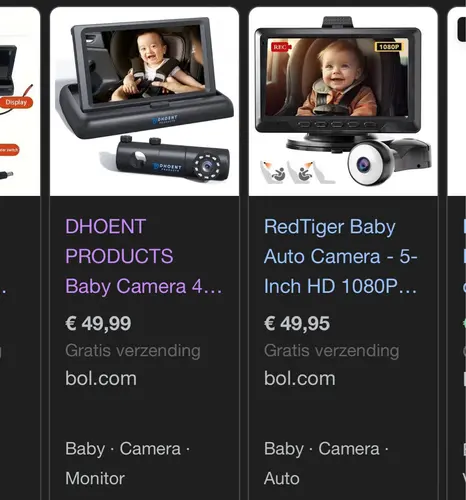 Beide kunnen kindje zien via het schermpje, niet alleen bestuurder