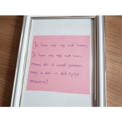 Aan directe familie zijn we foto lijstjes aan het geven met deze tekst: je kan me nog niet horen, je kon me nog niet zien, maar als ik word geboren, mag ik dan in dit lijstje misschien?