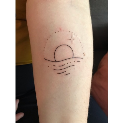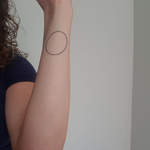 Ik heb er ook een. Het is een cirkeltje (alleen de lijn) op de zijkant van mn pols ter groote van hoe groot het kindje was ten tijde van de miskraam. Ik ben er nog altijd super "blij" mee, want ook dit kindje hoort bij ons. T grappige is, door de locatie vertekend de vorm soms een beetje, dan lijkt t op een ei, maar dat is ergens ook wel weer toepasselijk. Mijn vriend heeft trouwens dezelfde, wat ik ook erg mooi vind.