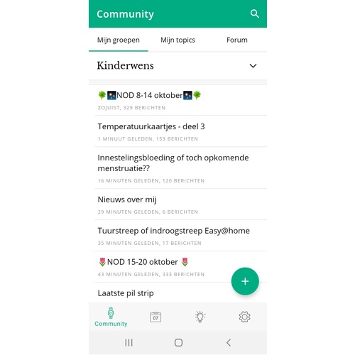 - Als je een kinderwens hebt, opent de app in het tabje 'community' in plaats van het tabje 'Vandaag'. Zo kan je al je vragen meteen op het forum stellen.🗣️