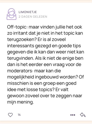 En wat feedback betreft, daar is een topic voor ^^ https://community.24baby.nl/forum/algemeen/feedback-en-suggesties-app-3-y5gx0E