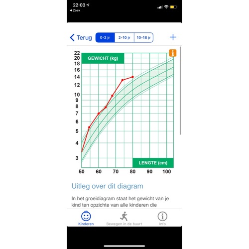 Daarnaast is de lengte liggend niet betrouwbaar te meten. Ik zou dus even niet naar de gewicht lengte, maar de gewicht leeftijd curve kijken. Heb je die ook?