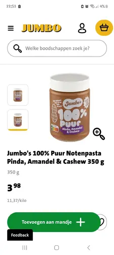 Bij pit & pit hebben ze ook veel soorten 100% notenpastas en niet in te grote potjes. Maar uiteraard wel verzendkosten dus echt voordelig is het niet.