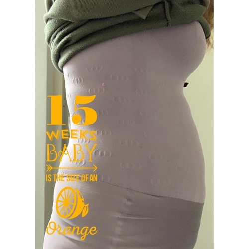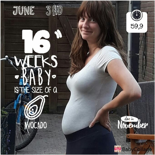 16w op deze, was veel meer dan ik had maar ook geen mega buik. Veel youtubers gebruiken van die nepbuiken onder hun kleding voor het 'ideale' plaatje hoor. 😋