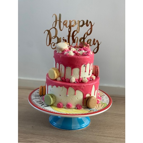 Wat Amles04 ook zegt; het is echt een machtige red velvet. Wij hebben echt twee dagen visite er mee kunnen bedienen (en hebben op dag 3 zelf het laatste stuk opgegeten). Wij hadden de kleinste en middelste om te kunnen stapelen. Wij hadden er macarons op als versiering maar je kunt ook andere koekjes gebruiken.