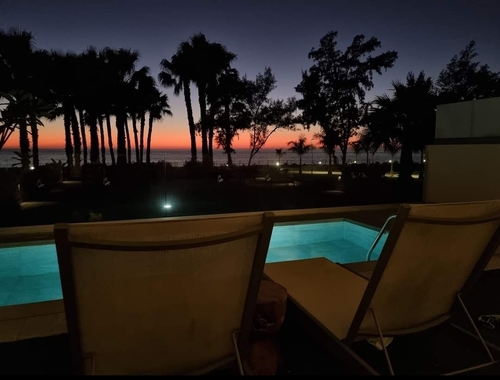 En idd met een verwarmd zwembad en verwarmd zwembad bij de beachclub of zelfs met een prive zwembad aan zee. Het prive zwembad is helaas niet verwarmd en anders was ie gewoon te koud 😂😂
