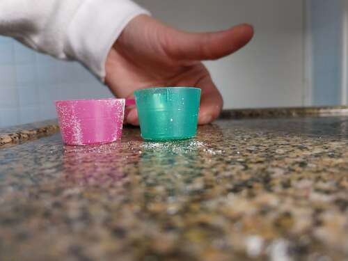 Nou als je het schepje van 1 naast 2 zet, is die vsn 2 groter. Snap dat de verhoudingen hetzelfde blijven ,