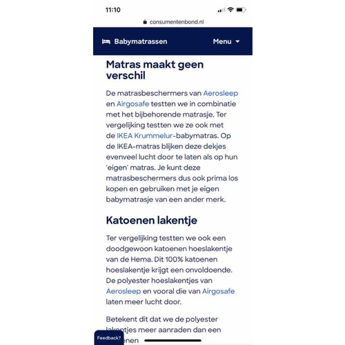 Ik heb matras+topper+hoeslaken van aerosleep, voor mijn eigen gemoedsrust is dit goed. Ik heb er wel vertrouwen in ookal zegt iedereen dat dit marketing is. Ik moet wel zeggen dat mijn zoontje nu sinds 2 weken omrolt en sindsdien ook op zijn buik slaapt (ook soms met zijn gezicht in het matras) en dat ik die eerste week ook amper heb geslapen omdat ik het zo spannend vond. Deze week heb ik het meer kunnen loslaten en het gaat nog steeds goed. Als jij je er geruster bij voelt zou ik het zeker aanschaffen!
