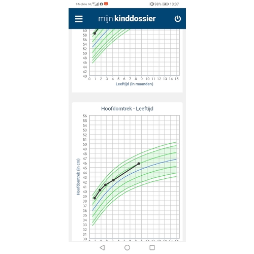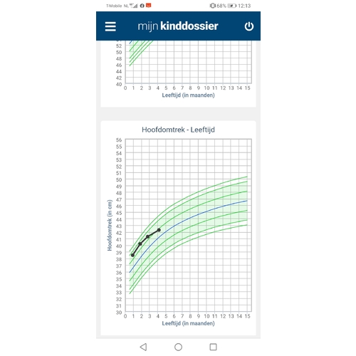 En nu ik mijnkinddossier zo met die van jou vergelijk liggen de blauwe lijnen ook heel anders! Wat vreemd! Bij jou is 41 cm op het absoluut gemiddelde bij 4 mnd en bij mij is 41 cm onder het gemiddelde bij 4 maand. 🤷🏻♀️