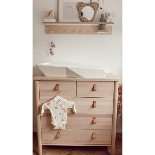 Ik heb een verschoonmat van Moomu. echt super blij mee. Ziet er een beetje modern uit🤣, maar een hydrofiel doek eroverheen is voldoende & kan je wassen onder de douch.