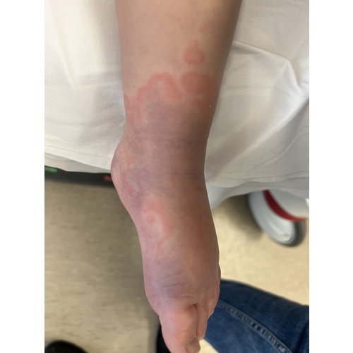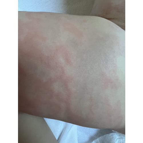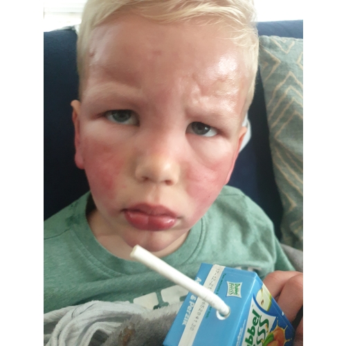Bedankt allemaal voor de reacties. Hijslaapt met mij in ons bed en ik houd zn ademhaling en koorts in de gaten. Val af en toe wel licht in slaapt. Het gaat met vlagen de allergische reactie wordt soms minder en dan weer heviger. We gaan nu dag 3 in.