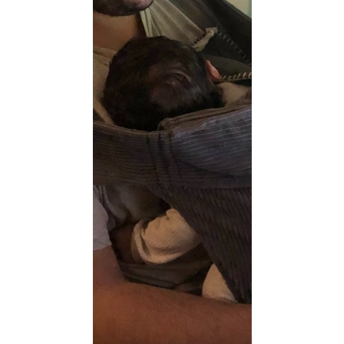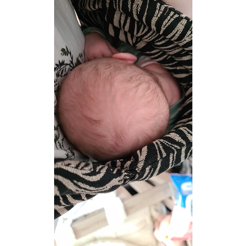 Nou, ik heb het idee dat het zo onnatuurlijk is dat ze haar hoofd zo ver naar voren moet leunen tegen mijn borst. Ze zit daardoor ook best diep in de zak waardoor ik bang ben voor rebreathing.