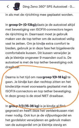Wij hebben een Ding zeno 360 graden. Ideaal ding! Kan van 0 tot 36 kilo. Werkt echt top. Draait heel makkelijk en je kan zelf kiezen of je hem achterwaarts doet of vooruit. Kan je op het moment zelf kiezen. Als je je kindje erin wil zetten draai je hem gewoon naar de deur, erin zetten, en weer terug draaien. Super handig ding en je kan er allerlei kussentjes uithalen om groter te maken of de hoofdsteun groter :)