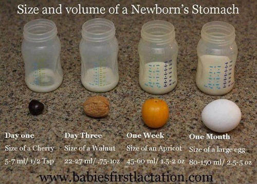 De richtlijn bij babys van 3 kilo is 450ml op een dag. Je geeft aan ze komt om de 3 uur, dan zit je op 8 voedingen. Dit is zo'n 56 ml per keer.