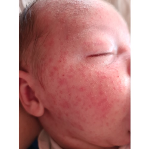 Ons dochtertje had hier ook heel erg last van na de kraam week echt precies zo. Begon op haar gezichtje en vervolgens zat het ook op haar buikje. Ze is nu bijna 8 weekjes en het is bijna helemaal weg nu ☺️