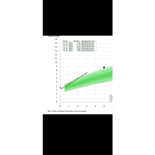 Je zou eens kunnen kijken naar de groei curves van WHO, dat ligt waarschijnlijk veel meer in lijn met jouw kleintje! Dat stelde mij ook gerust, want mijn zoontje vinden ze ook te zwaar (cb).