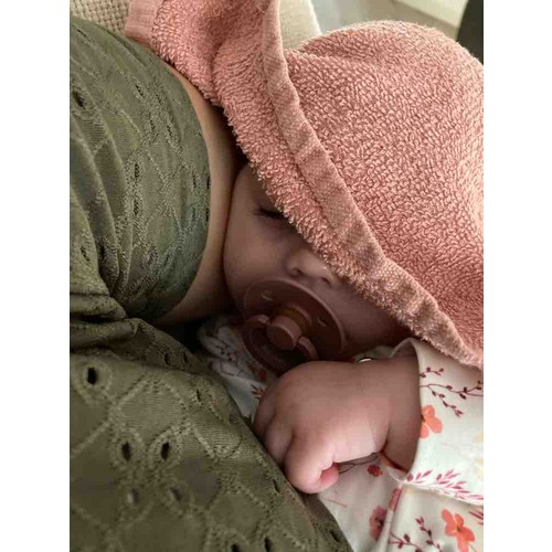 Uiteraard zorgen we ervoor dat ze goed kan ademen en zodra ze slaapt gaat doekje er af.