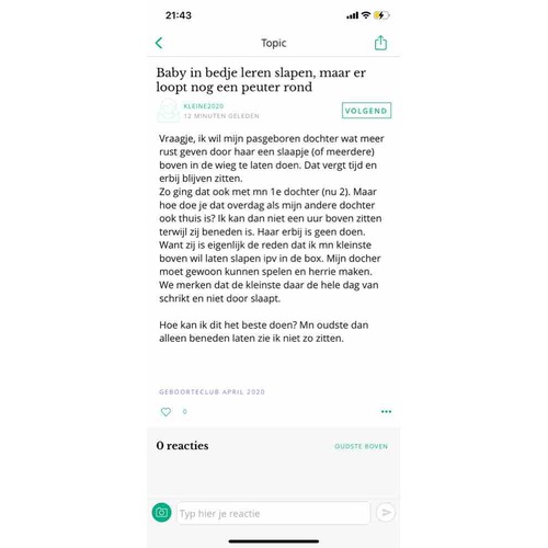 Mijn oudste was 2,5jaar toen de jongste kwam. Ik nam ze wel allebei mee naar boven en de oudste ging in de stoel zitten. Hij ging boekjes lezen. Af en toe kwam er wel een enthousiaste uitspatting "mama, kijk een hond!". Ja... shhhhh. Je broer moet slapen weet je nog, fluisterde ik dan en dan damde hij weer in. En daarna slopen we samen de kamer uit.