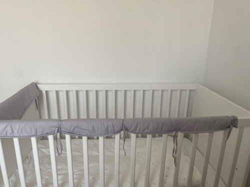 Ons bedje van Woodies heeft een plastic laagje over de bovenrand, voelt een beetje als een soort plastic tafelzeil. Het wordt hiermee geleverd. Ik vind het wel handig want onze oudste knaagde veel, dus bij deze baby ook wel kans op.
