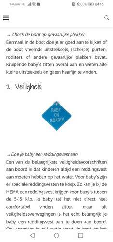 Jammer dat iedereen er gelijk van uit gaat dat ik geen zwemvest ga gebruiken... #moedermaffia dingetje? Wat dachten jullie van de momenten dat de kleine moet of wilt eten? En dan bedoel ik geen fles of borstvoeding. Echt niet dat al die eetmomenten te plannen zijn waardoor je ergens kan aanleggen oid om in t gras of wat dan ook te gaan eten... En zoals ik al aangaf mijn kind zit niet stil en wilt ook niet stil zitten. Die klimt en klautert, staat en kruipt etc. Het is geen kind om de hele tijd op schoot te houden oid. Dus voor degene die eigenlijk amper op mijn vraag reageren en dus geen tips geven gezien ik geen boot/vaarexpert ben. Hou alsjeblieft je vingers van het toetsenbord af en reageer niet op mijn post. Voor dege die wel tips geven dank daarvoor! En voor degene die nog willen reageren. Een reddingsvest wordt daar ter plaatse gehuurd dus maak je daarover geen zorgen. Het gaat om speciefieke tips met een beweegelijke baby op een boot juist om het varen zo veilig mogelijk te maken maar ook om er voor te zorgen dat we als volwassenen ook een beetje kunnen genieten
