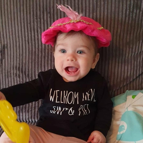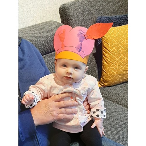 6 maanden oud met haar, op het kdv "geknutselde", pietenmuts 馃グ馃挆
