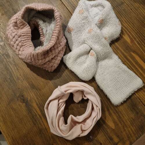 Wij hebben van die kolletjes, echt alleen voor om de nek. Die zijn van de AliExpress, die kon ik nergens vinden. En we hebben een klein sjaaltje van de hema, daar zit zo'n gaatje in waardoor die goed blijft zitten. We gebruikten ze volgens mij pas echt vanaf 1 jaar toen ze niet meer in de wagenbak lag. En dat kleine sjaaltje is ook gewoon handig om ff je kleintje naar de auto te tillen ofzo... die is zo aan en uit. Maar nu met 3 draagt ze hem ook nog... en die kolletjes draagt ze nu ook nog. Gaan lang mee 馃檭 vandaag zag ik bij de zeeman wel van die kolletjes met zo'n stuk nog eronder zeg maar. Dat is wel handig als de rits niet helemaal dicht gaat/kan.