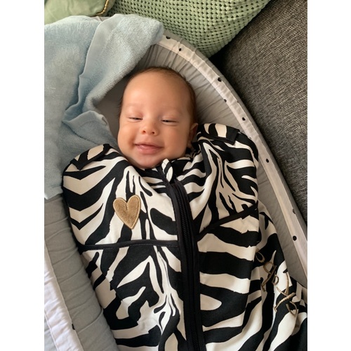 Overdag vindt hij slapen in de kinderwagen soms nog moeilijk maar het gaat stukken beter.