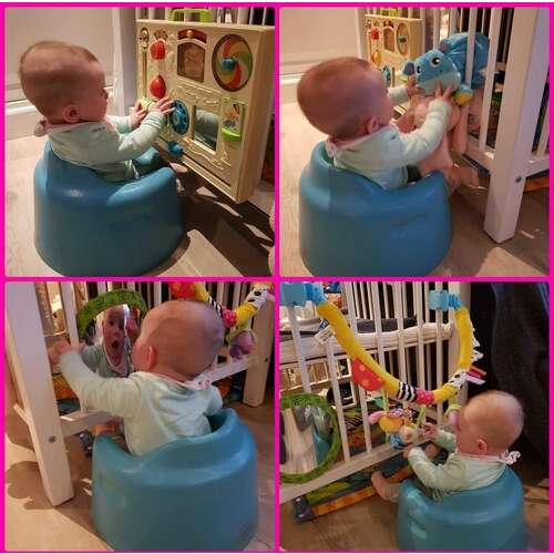 Hier hebben we zooooveel lol van gehad. De box volhangen met speeltjes en haar dan steeds doorschuiven naar het volgende speeltje. Zo kan je dezelfde speeltjes op een andere manier gebruiken en je hebt je handen ff 10 minuten vrij, heerlijk!