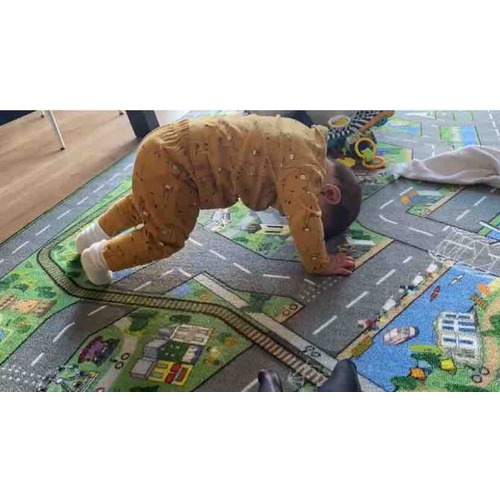 Mijn zoontje doet dit ook, is bijna 11 maanden en het liefst met de kont zover mogelijk in de lucht 🤭😅