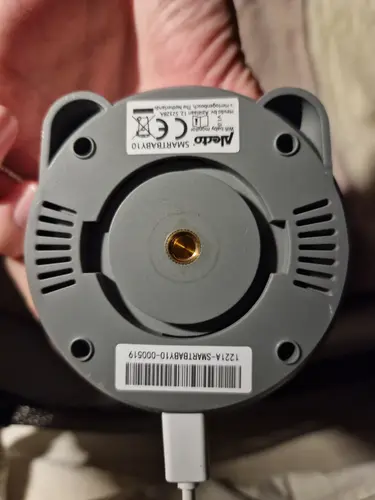 Smart baby 10 zat bij ons aan t plafon met een schroef aan de onderkant. Je kan het beeld in de app omdraaien en je kan de camera naar links, rechts, boven en onder bewegen.