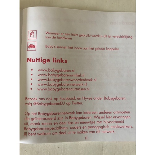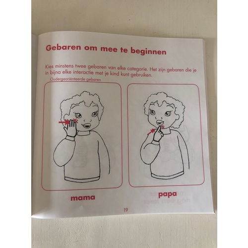 Op instagram heb je Zeg het met je handjes, zij biedt ook een online cursus aan. Ik oefen met mijn zoontje inmiddels ook; mama, papa, meer, klaar, poes, hond. Hij reageert heel blij bij de gebaren, maar of ie t al snapt... blijven oefenen 😊