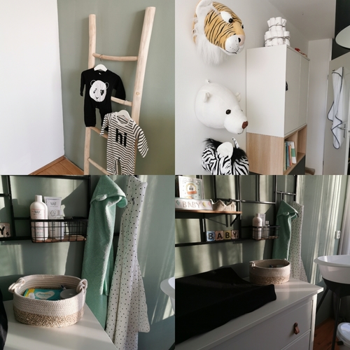 Het thema van de babykamer is.. hier staan alle spullen voor de baby die bij aankleden, wassen, verschonen en aankleden horen.