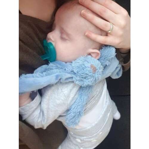 Hij moest er wel flink van huilen bij het inslapen en vanmorgen toen hij wakker werd. Maar heb de foto laten zien, dat vond hij interessant. Al zei hij toen ook dat ie de speen terug wil. Zal wel een paar dagen duren al met al, denk ik.