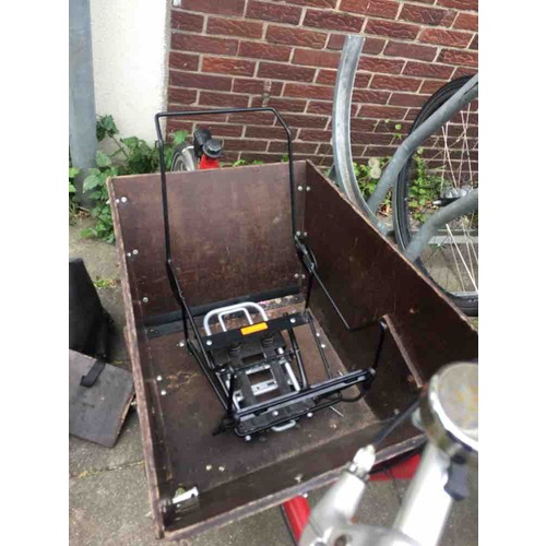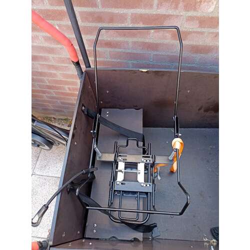Je moet de maxicosi drager wel vast maken. Wij hebben hem aan de bodem van de bakfiets maar het kan geloof ik ook op het zitplankje bevestigd worden.
