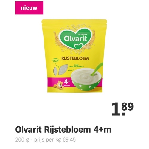 Ik gaf mijn zoon vanaf 4 maanden ook rijstebloem, dat aangegeven bij het cb en moest er mee stoppen. Er schijnt arseen in te zitten wat niet goed is. Ik werd een beetje kwaad omdat ik dan niet begrijp waarom het dan verkocht wordt. Ik had ook niet het idee dat hij er lekkerder van sliep dus wel gelijk gestopt. Nu is hij 6.5 maand en krijgt sinds paar weken granenpap in zn fles, ook van olvarit