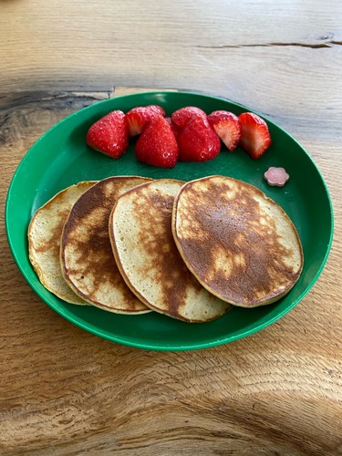 Ik maak ze met een banaan, een ei en zo’n 2-3 eetlepels volkorengranen. Wordt wel een beetje een zacht prakje, maar voor m’n zoontje van 8 maanden helemaal prima