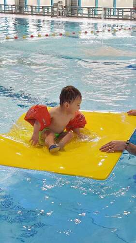Zoontje was hier 15 mnd. Droeg beco bandjes. Hij was toen ongeveer 11 kg. Ging super goed.