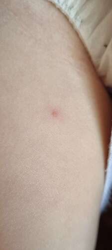 Ja het is een rood plekje met een blaasje met vocht. Tot nog toe is dit wel het enige plekje!