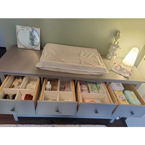 De Skubb! 1 pakket met diverse maatjes past precies in 1 lade van deze commode :)
