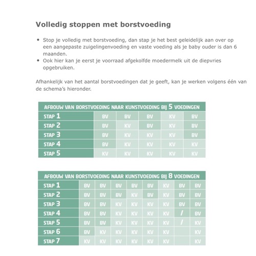 Na paar dagen kolfde ik nog maar 1x per dag savonds ik had altijd overproductie tijdens borstvoeden. Maar het stoppen ging heel soepel ik heb 1 keer last gehad van stuwing wel moest ik nog 2 weken ofzo blijven kolven daarna werden mn bosten snel leger en nu 5 maanden later sls ik er in knijp komt er nog melk uit een beetje heb geen ontstekingen gehad ofzo nergens lsst vsn gehad maar ik raad dit niet aan zo snel