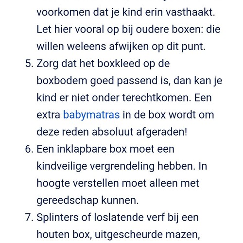 Een box matras wordt afgeraden vanwege de veiligheid https://www.consumentenbond.nl/kind-en-veiligheid/een-box-kopen