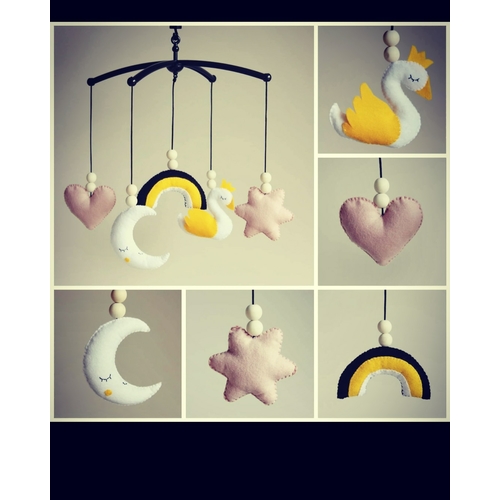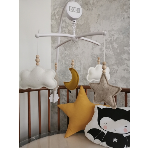 Wij hebben deze muziekmobiel 😊 Je kunt ze in verschillende vormpjes en kleurtjes bestellen. En ook verschillende houders.