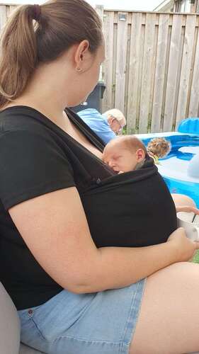 Ja de tops die ik heb gezien zijn ook niet bedoeld om mee te dragen / lopen, puur om te liggen. Er zit ook geen stof tussen jezelf en de baby, waardoor je huid op huid contact hebt.