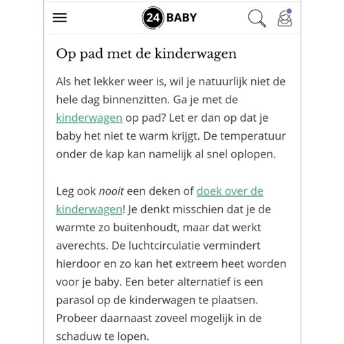 Mijn zoon is 9 maanden. Ik zet hem in de schaduw + ingesmeerd met zonnebrand. Ik vermijd het heetst van de dag om dan buiten te zitten met hem (12-15 u). Zie ook: https://www.kwf.nl/kanker-voorkomen/zon-uv-straling-en-huidkanker/zonnetips/weren