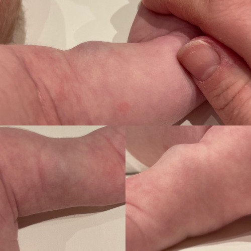 Ik heb een zoontje van 7 weken. Gisteravond wilde we hem in bad doen. Ik ontdekte toen een bult/verdikking op zijn bovenarm aan de binnenkant. Het is ook een beetje verkleurd/blauw. Mijn man en mij is dit eerder niet opgevallen. Natuurlijk heeft de huisarts dit vandaag al gezien! Nu denkt ze dat het iets onschuldigs is zoals bijvoorbeeld een cyste. Alleen gaf ze aan dat het wel heel gek is op deze leeftijd. Wij vinden het vooral ook gek dat het zo in een keer er zit en wat verkleurd is. Onze zoon heeft ook 2 aardbeien vlekken maar dat is dit duidelijk niet!
