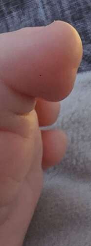 Ja precies hetzelfde bij beide grote tenen. Ik vond het er ook gek uitzien maar ben er niet mee naar de huisarts geweest omdat er verder niets bijzonders met haar was. Nu is het dus inmiddels ook verdwenen, denk doordat ze nu loopt.