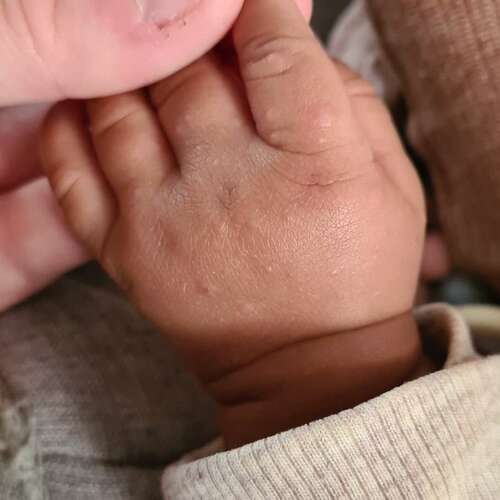 Hier ook gehad, echt maar een paar. Een week later had ik mijn hele mond vol blaasjes. Bleek achteraf dus de hand mond voet ziekte te zijn... Hij heeft er gelukkig geen last van gehad (hij niet......馃ゴ).